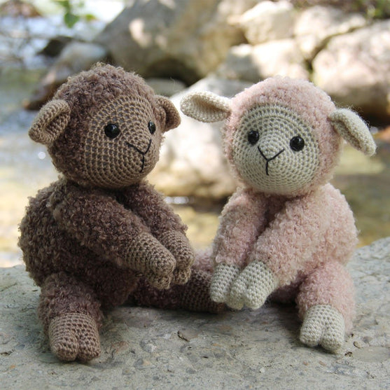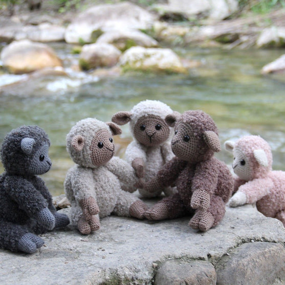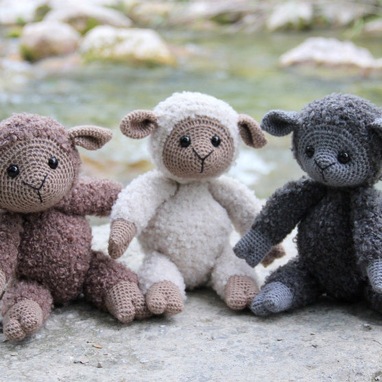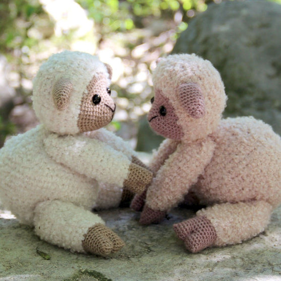 Nu kan du hækle de sødeste får fra Go Handmade i en kombination af garnerne Curly og Vintage. Curly-garnet giver et lækkert vamset look, som er perfekt til denne type bamser.