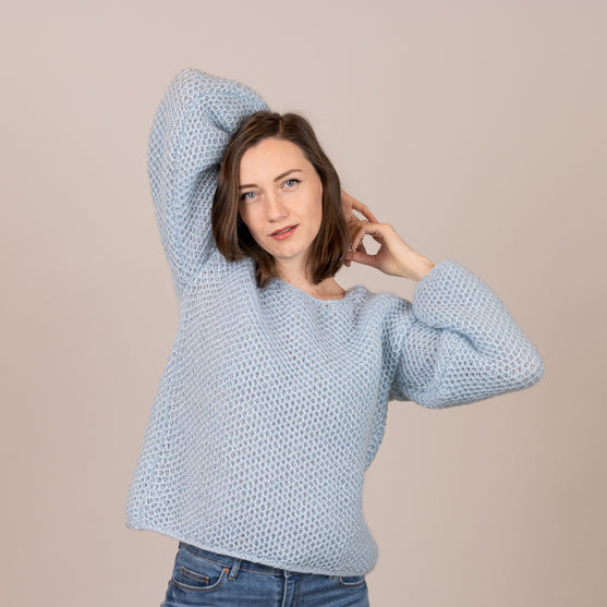 Flot og feminim bluse i det luftige og bløde garn Mohair Delight.