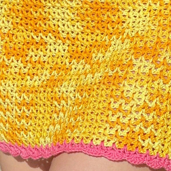 Dette unikke design er lavet af fire trekantede stykker og forbundet med en enkelt række V-masker, hvilket skaber en elegant V-hals silhuet. I denne opskrift vil du dykke ned i kunsten at hækle V-masker og mestre teknikken til problemfri overgang mellem rækker og omgange. Den medfølgende fotoguide sikrer, at selv nybegyndere trygt kan kaste sig ud i dette projekt. Denne kjole giver en fantastisk mulighed for at forbedre dine hækleevner og samtidig skabe et moderigtigt og iøjnefaldende stykke tøj. Download og begiv dig ud på en skøn hæklerejse!