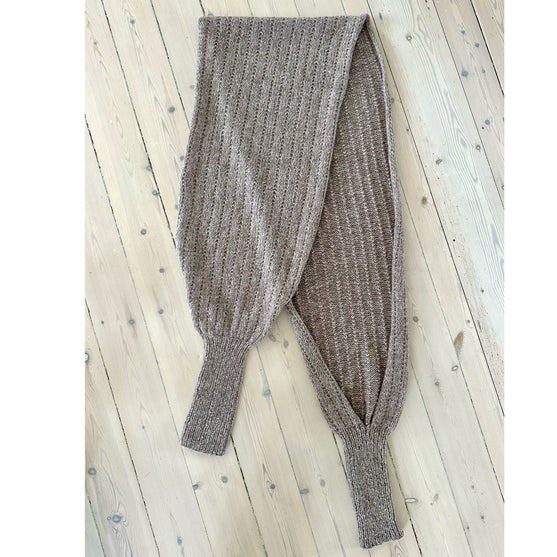 Meadow Sunset Wrap er en kombination af et strikket sjal og en sweater. Det er strikket, så man kan svøbe sig i det. Der er detaljer med strukturstrik og i-cord-kant. I hver ende er en ribkant som fungerer som ærme. Man strikker først den ene ribkant, derpå tages masker ud til selve sjals-delen og til sidst reduceres maskeantallet igen og den sidste ribkant strikkes.