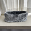 Kurven hækles i tunesisk ret. Der hækles et langt stykke, der sys sammen langs de korte sider. Stykket hækles sammen med bunden med fastmasker. Se en beskrivelse af tunesisk ret sidst i opskriften.